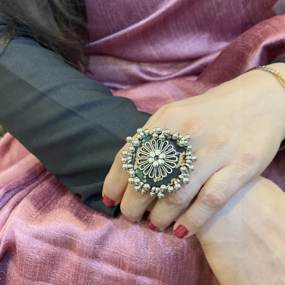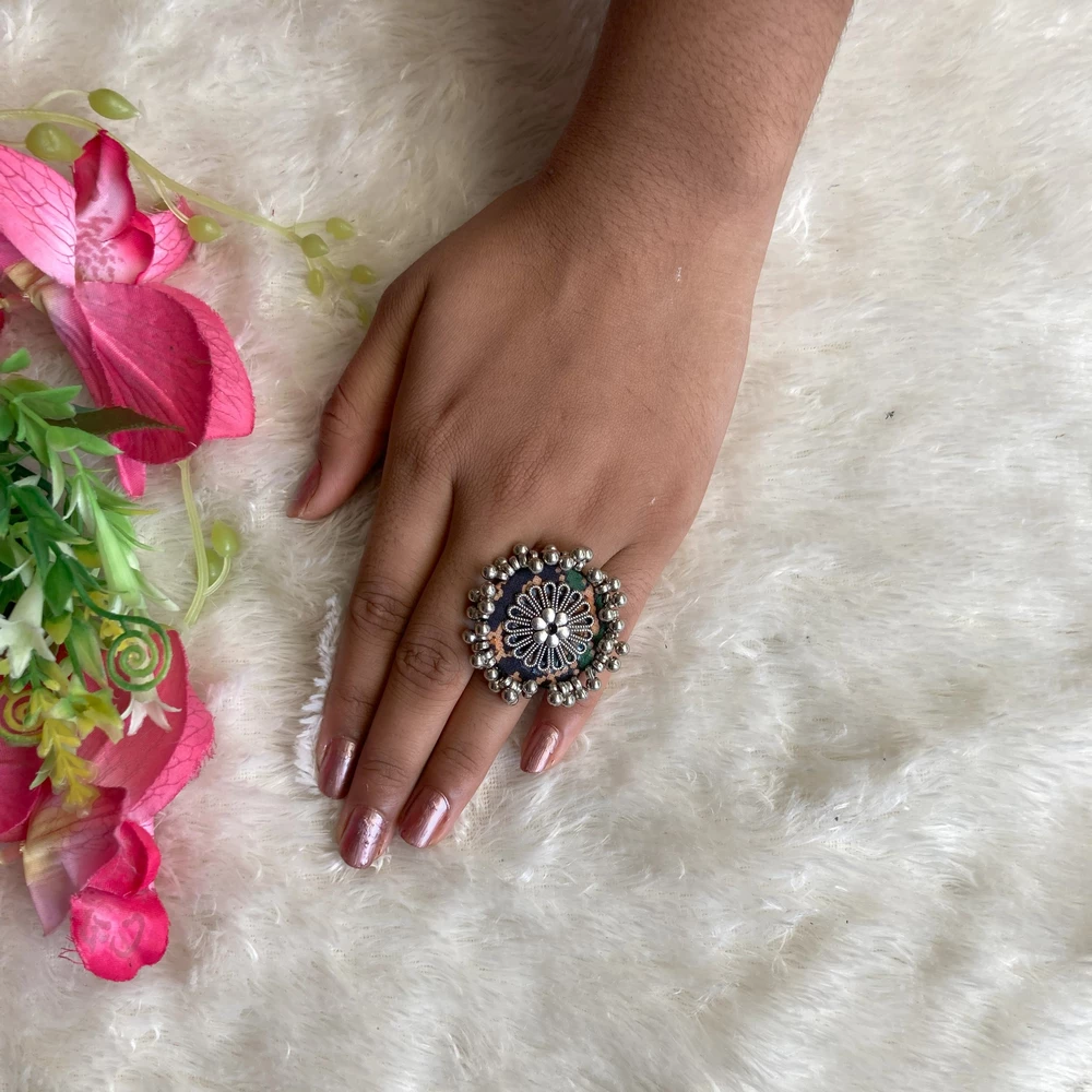 Style: Black-cream round handcrafted ring.