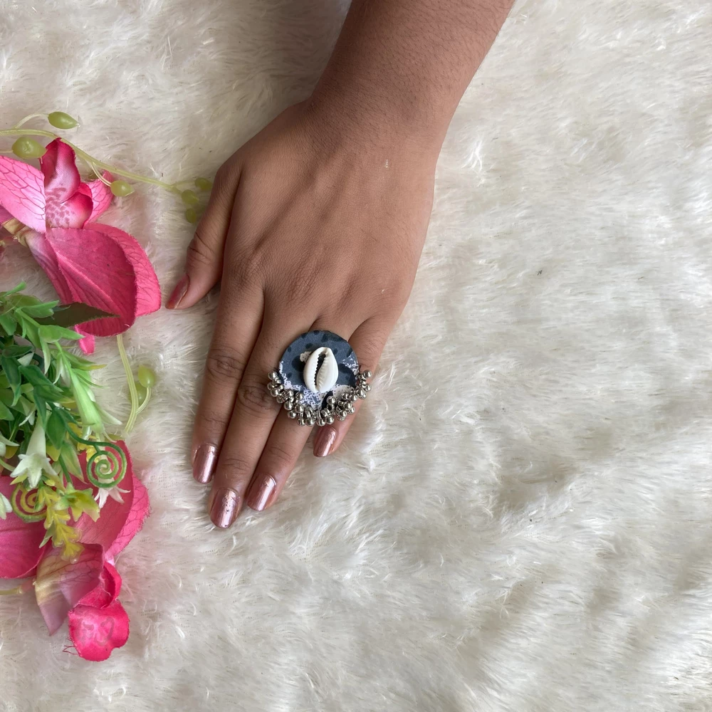 Style: Black-grey round handcrafted ring.