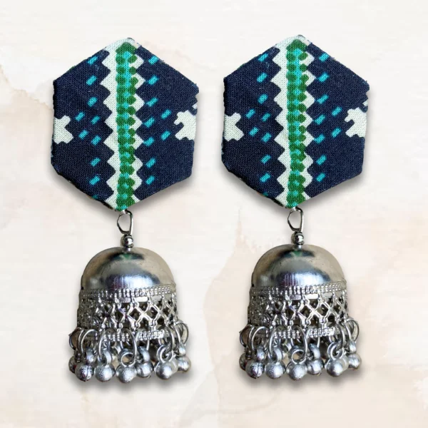Style: Black Hexagon With Jumkha handcrafted earrings.