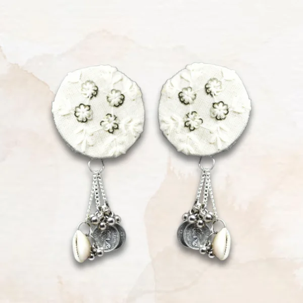 Style: White Round With Jumkha handcrafted earrings.